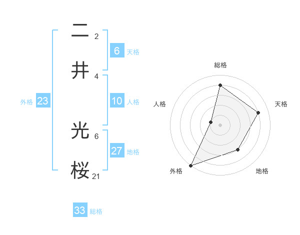 二井 光桜さんの総格は33画の4点!