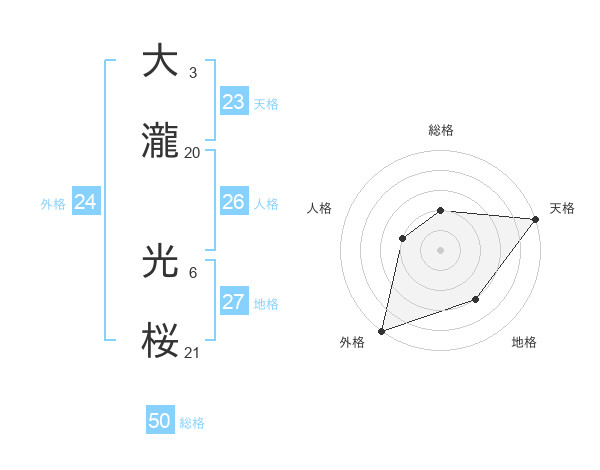 大瀧 光桜さんを姓名の画数から五運を鑑定