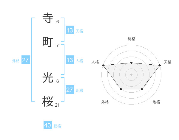 寺町 光桜さんの天格は13画の5点!