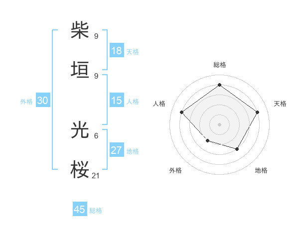 柴垣 光桜さんの総格は45画の4点!