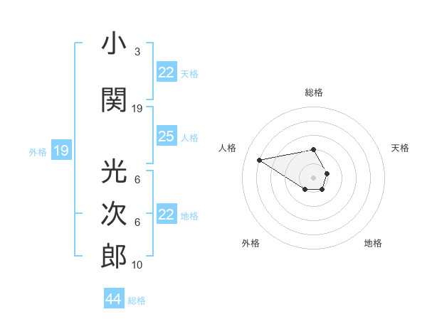 小関 光次郎さんを姓名の画数から五運を鑑定