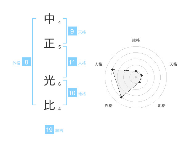 中正 光比さんの総格は19画の1点!