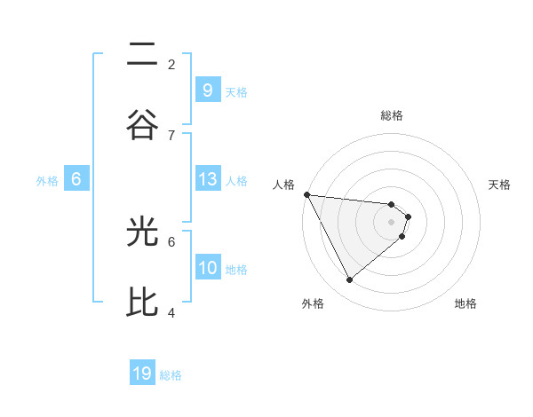 二谷 光比さんの総格は19画の1点!