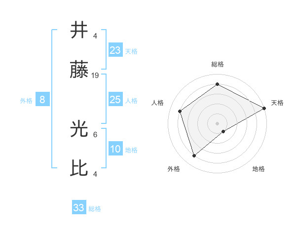 井藤 光比さんの総格は33画の4点!