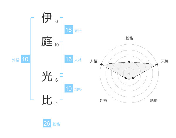 伊庭 光比さんを姓名の画数から五運を鑑定