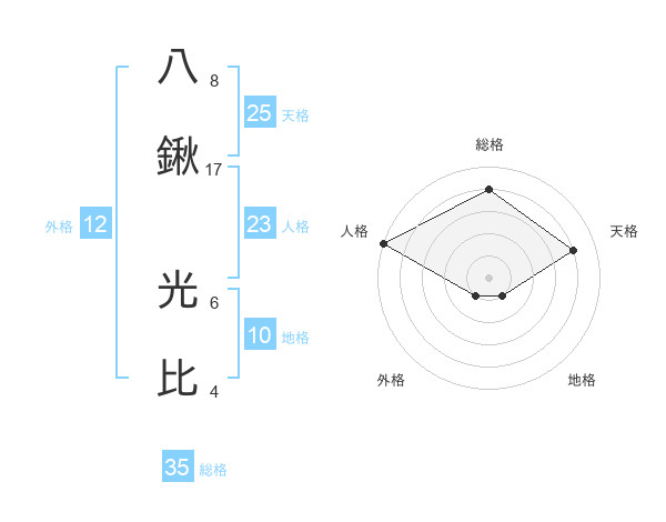 八鍬 光比さんの天格は25画の4点!