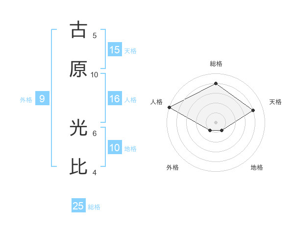 古原 光比さんの総格は25画の4点!