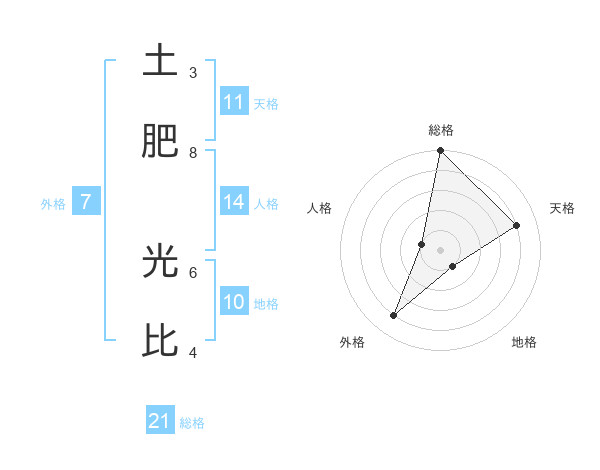 土肥 光比さんの総格は21画の5点!