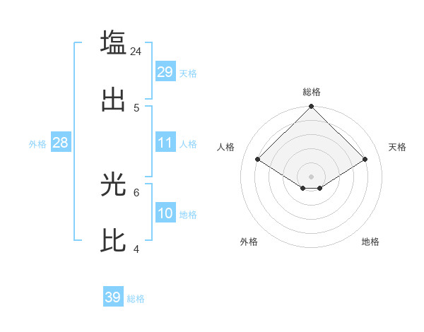 塩出 光比さんの総格は39画の5点!