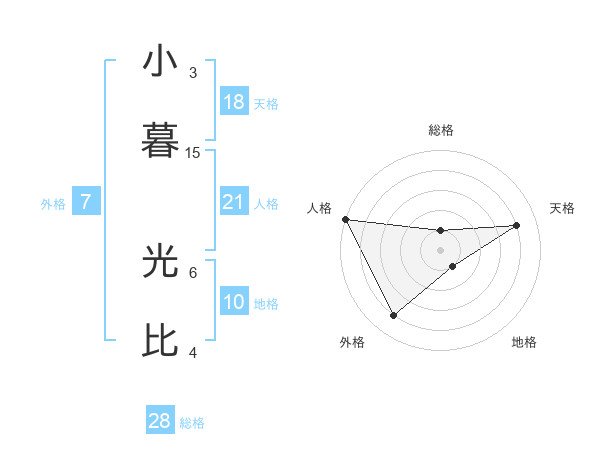 小暮 光比さんの天格は18画の4点!
