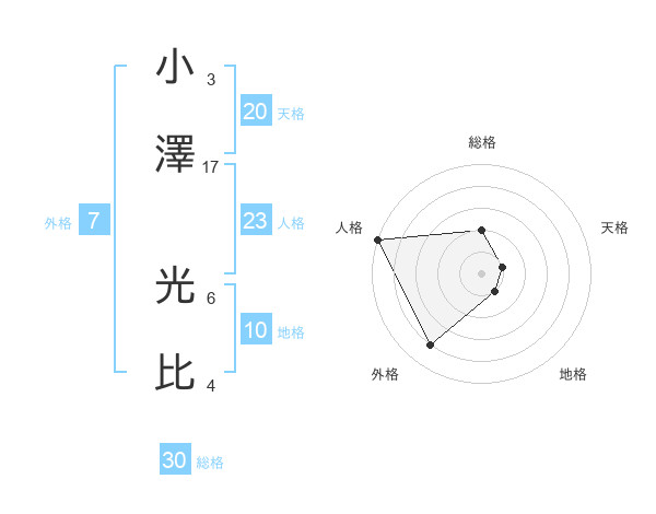 小澤 光比さんの天格は20画の1点!