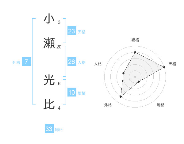 小瀬 光比さんを姓名の画数から五運を鑑定