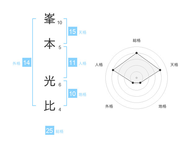 峯本 光比さんの総格は25画の4点!