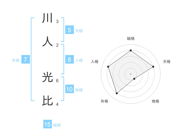 川人 光比さんの総格は15画の4点!