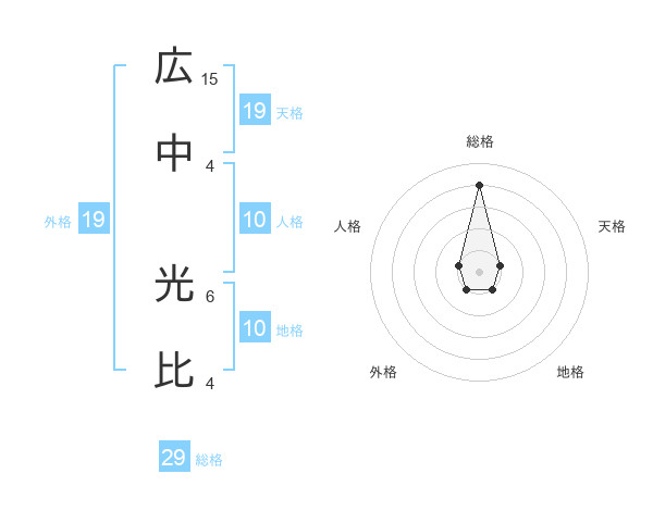 広中 光比さんの総格は29画の4点!