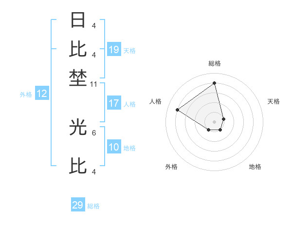 日比埜 光比さんを姓名の画数から五運を鑑定