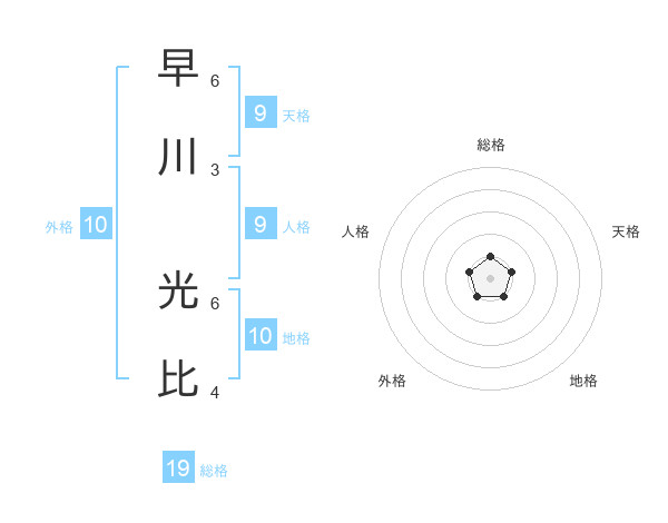 早川 光比さんの総格は19画の1点!