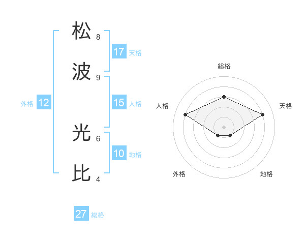 松波 光比さんの天格は17画の4点!
