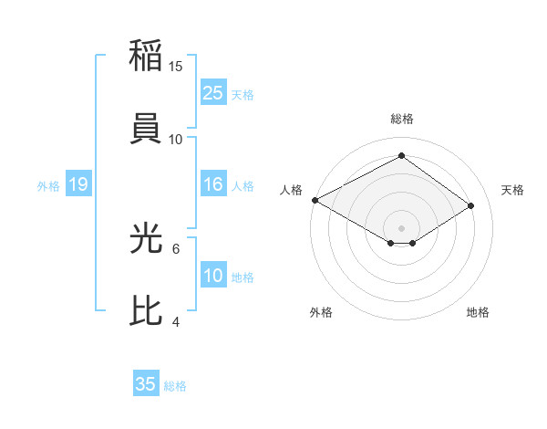 稲員 光比さんの天格は25画の4点!