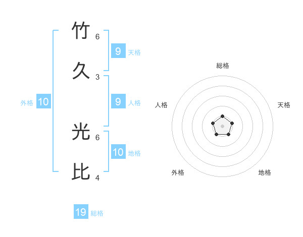 竹久 光比さんの総格は19画の1点!