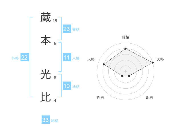 蔵本 光比さんの天格は23画の5点!