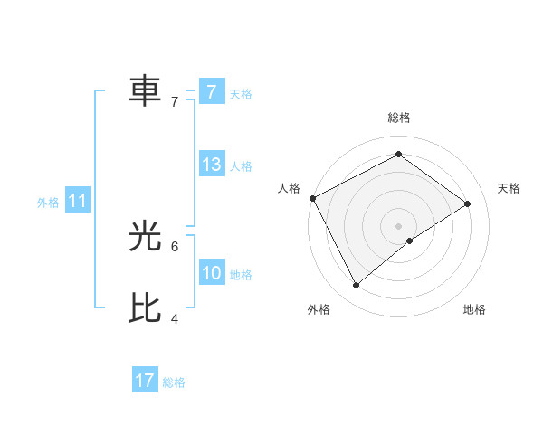 車 光比さんの総格は17画の4点!