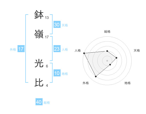 鉢嶺 光比さんの総格は40画の2点!