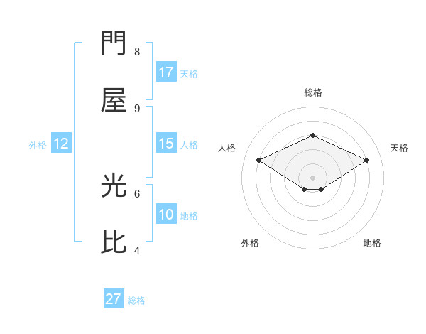 家系が持つ宿命的な運勢を表します。祖先から受け継いだ苗字ですので自分の力が及びません。家柄を象徴します。