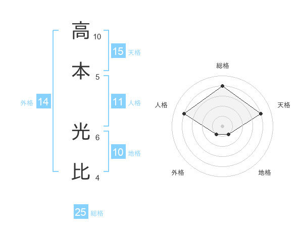 高本 光比さんの総格は25画の4点!