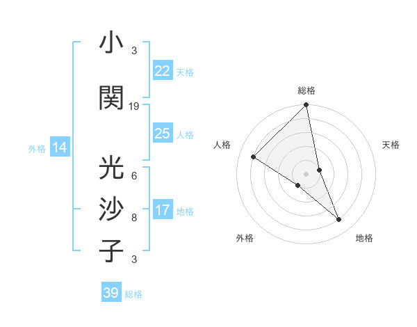 小関 光沙子さんを姓名の画数から五運を鑑定