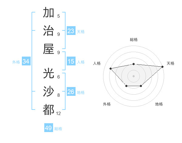 加治屋 光沙都さんを姓名の画数から五運を鑑定