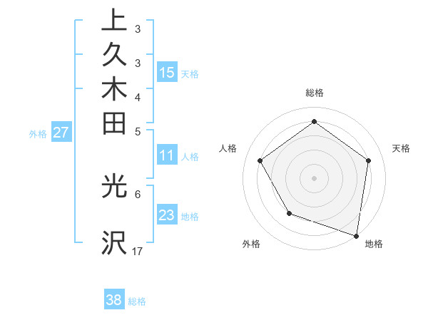 上久木田 光沢さんの総格は38画の4点