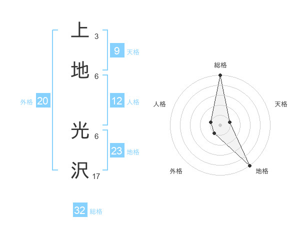 上地 光沢さんの総格は32画の5点!