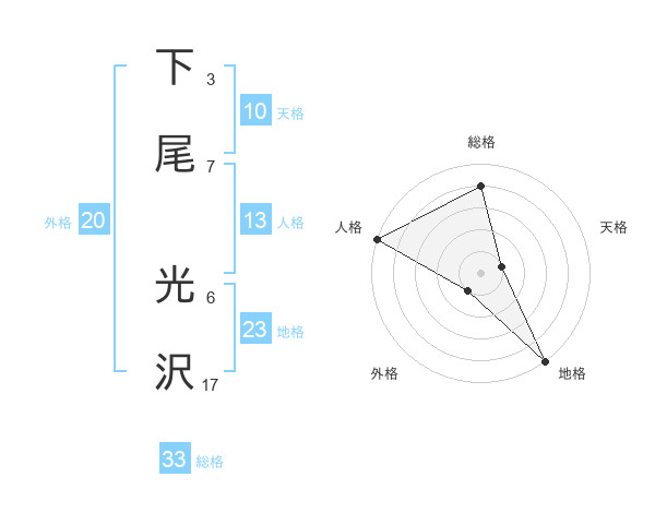 下尾 光沢さんの地格は23画の5点!