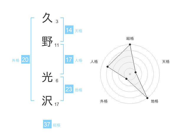 久野 光沢さんの総格は37画の5点!