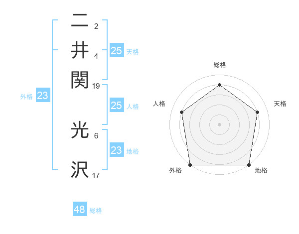 二井関 光沢さんの外格は23画の5点!