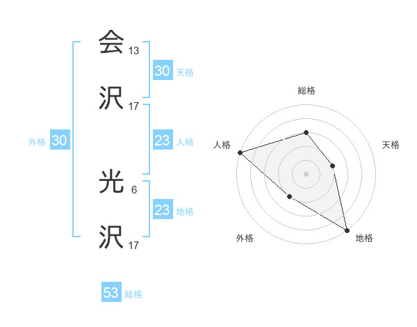 会沢 光沢さんの総格は53画の3点!