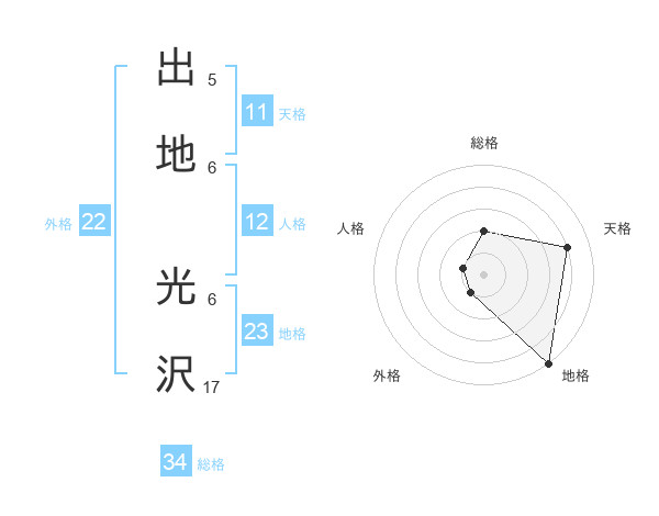 出地 光沢さんの総格は34画の2点!