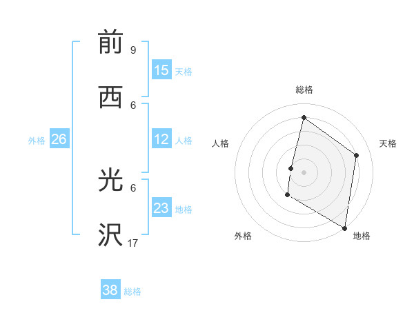 前西 光沢さんの総格は38画の4点!