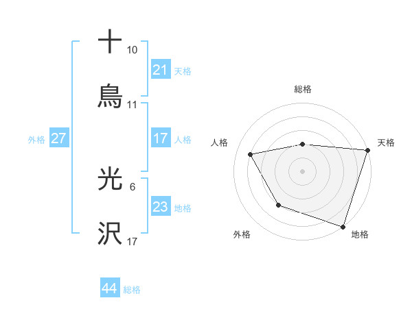 十鳥 光沢さんを姓名の画数から五運を鑑定