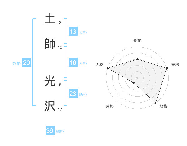 土師 光沢さんの天格は13画の5点!