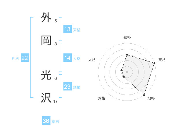 外岡 光沢さんの天格は13画の5点!
