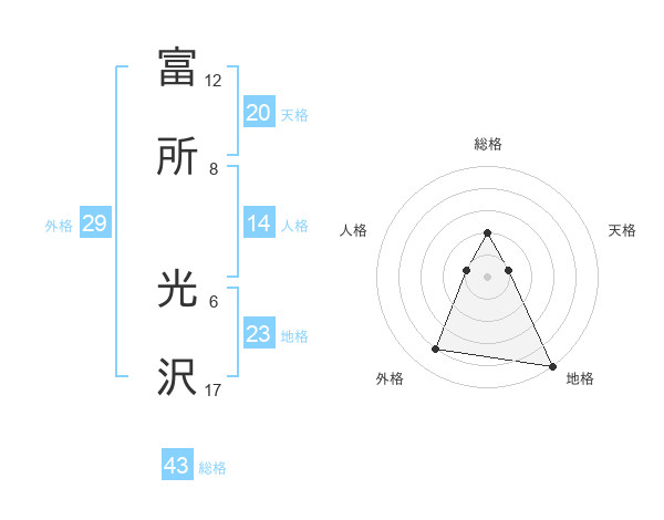 富所 光沢さんの総格は43画の2点!
