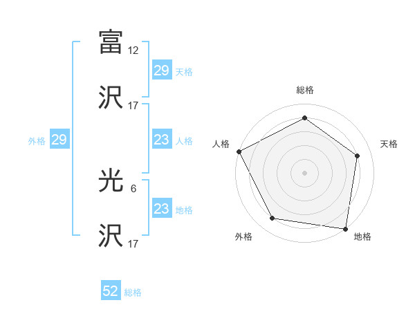 富沢 光沢さんの総格は52画の4点!