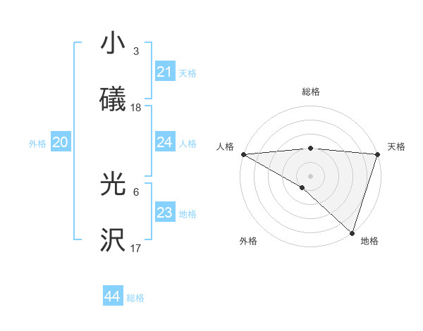 小礒 光沢さんを姓名の画数から五運を鑑定