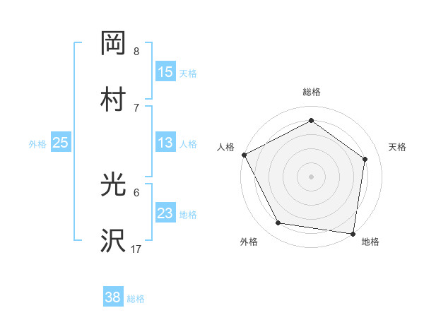 岡村 光沢さんの総格は38画の4点!