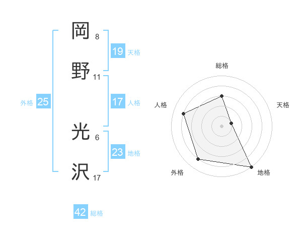 岡野 光沢さんを姓名の画数から五運を鑑定