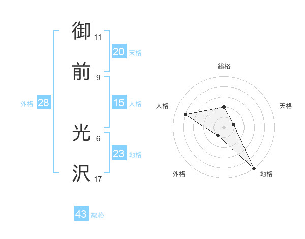御前 光沢さんの総格は43画の2点!