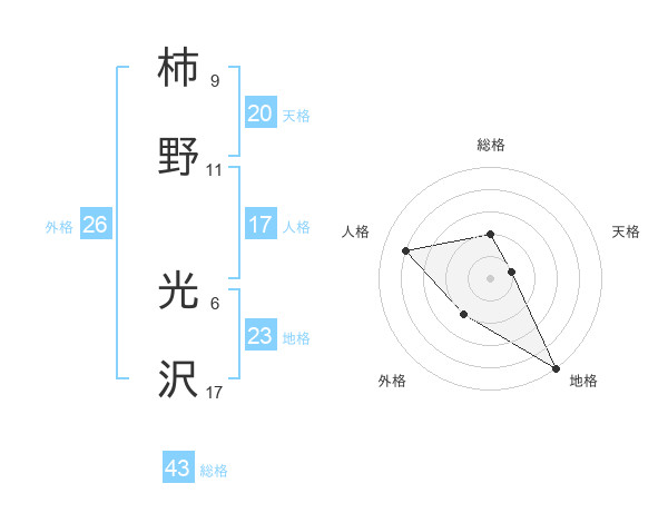 柿野 光沢さんを姓名の画数から五運を鑑定