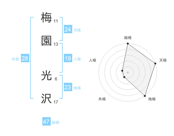 梅園 光沢さんの総格は47画の5点!